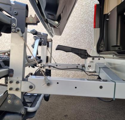 Hier j'ai également démonté le siège avant (la batterie moteur est logée sous le siège passager avant et est très facile à démonter, bon point) car je voulais virer l'embase pivotante pour pouvoir abaisser le siège conducteur de quasi 3 cm car je suis assis trop haut, mais je n'ai pas réussi à démonter les 2 dernières vis (les ergots qui servent de butée à l'embase). J'ai même cassé ma clef Torx 40 en forçant, du coup j'ai tout remonté...