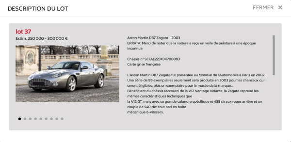 Celle la était en vente hier, les enchères se sont arrêtées vers 22k€ je crois, visiblement sous le prix de réserve.